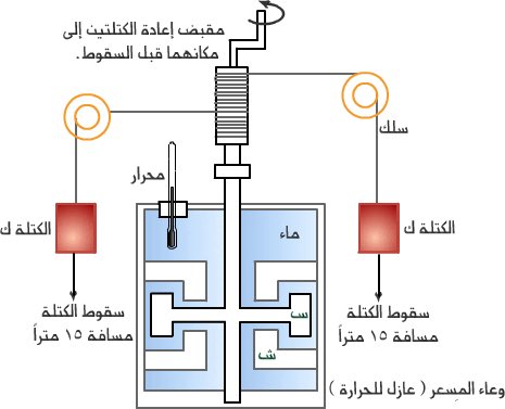 و الجهاز المستخدم هو ميزان يسمى ميزان الالتواء و هو جهاز له ذراع افقيه تحمل كرتين من الرصاص عند نهايتها ، وهذه الذراع معلقة من منتصفها بسلك رفيع قابل للدوران يجعلها حساسة لأي قوة أفقية