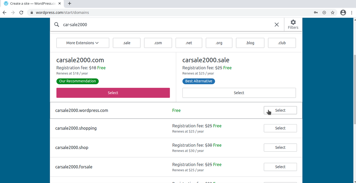 المهم نختار wordpress.com