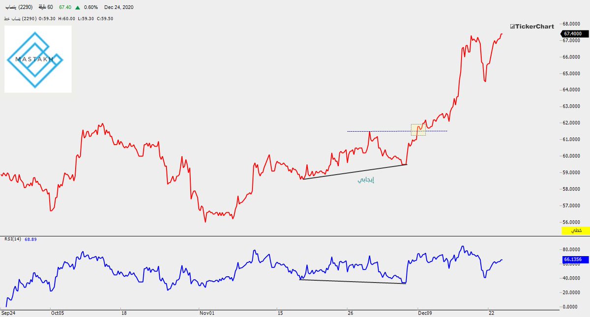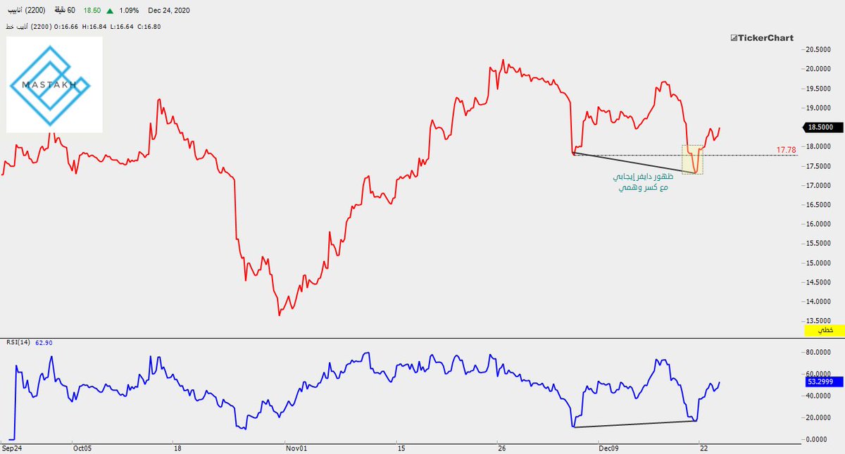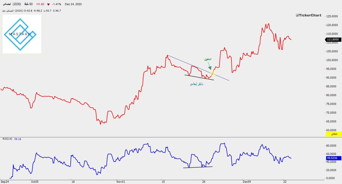 * دايفرجنس إيجابي (شرائي) * دايفرجنس سلبي (بيعي)