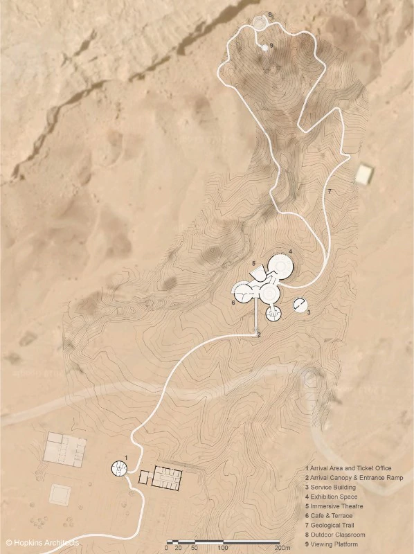 The new Buhais Geology Park by Hopkins Architects seems to have been part of the desert since ancient times. Located 50 km from Sharjah in the United Arab Emirates, the project area contains marine fossils over 65 million years old and burial sites dating back to the Stone,