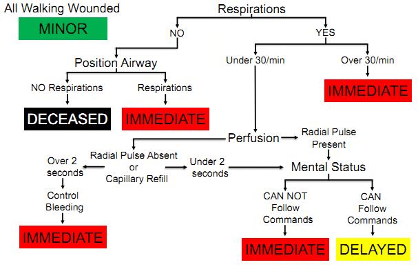 في حال كان عنده نزيف شديد او قطع عضو نعطيه لون احمر ونسعفه فورا لأنه حاله حرجه غير قابل للتأخير (لما كتبت فوق نبدأ بالحالات المتوسطة كان هذا قصدي (الأحمر) ، عذرا)
