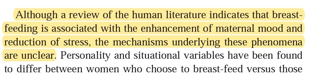 الرضاعة الطبيعية مضاد إكتئاب طبيعي لتخفيف إكتئاب ما بعد الحمل ولأن المزاج يتقلب بسرعة هناك حاجة متكررة للرضاعة فكلما إنخفضت مستويات مضادات الإكتئاب عادت حاجة الطفل للحليب فيحصل توازن وثبات