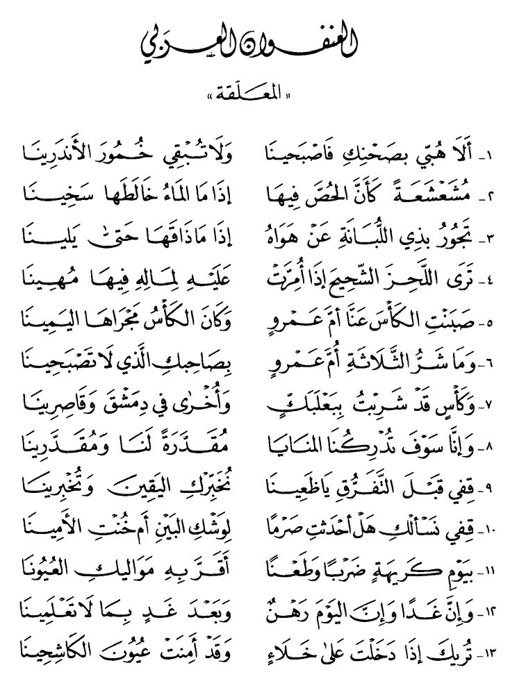 المعلقة الخامسة: لعمرو بن كلثوم التغلبي