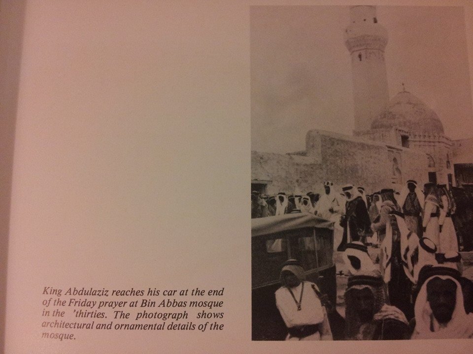صوره للملك عبدالعزيز رحمه الله , بعد صلاة الجمعه في مسجد الحبر عبدالله بن عباس - رضي الله عنهما - قبل اعادة بناؤه في عهد الملك سعود رحمه اللة.