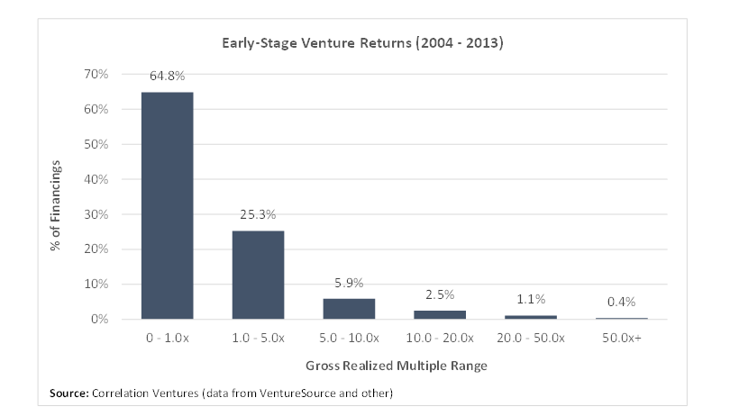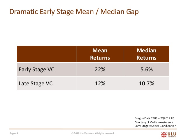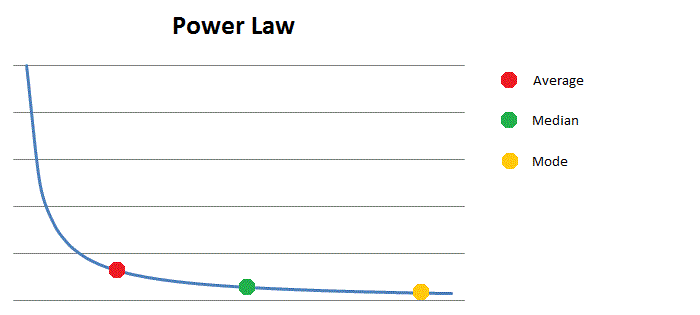 احصائياً لو استثمرت في كل شركة ناشئة بغض النظر عن أدائها، فأنت بطبيعة الحال حتحقق عائد يساوي متوسط Mean العائد في الإستثمار الجريء