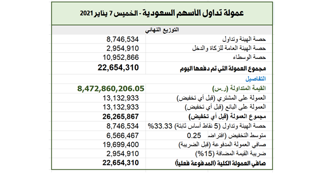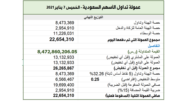 12) بما إن الهيئة وتداول يحصلون 5 نقاط أساس قبل خصم أي عمولة، إذاً دخلهم لعام 2020 = 2,188,186,301 ريال