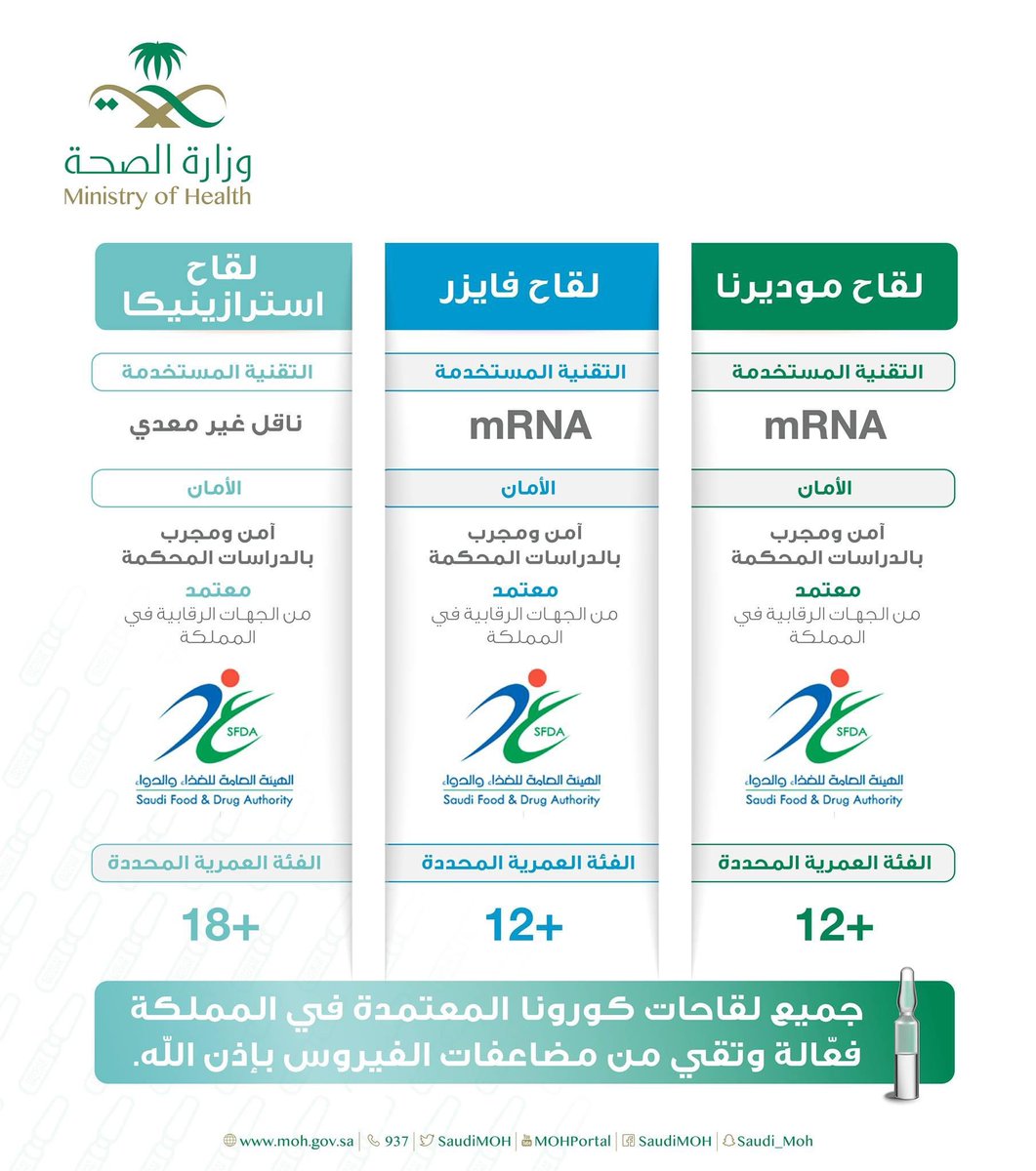 في الوقت الحالي تم موافقة هيئة الغذاء والدواء السعودية على نوعين من لقاحات كورونا #كوفيد_19⬇️