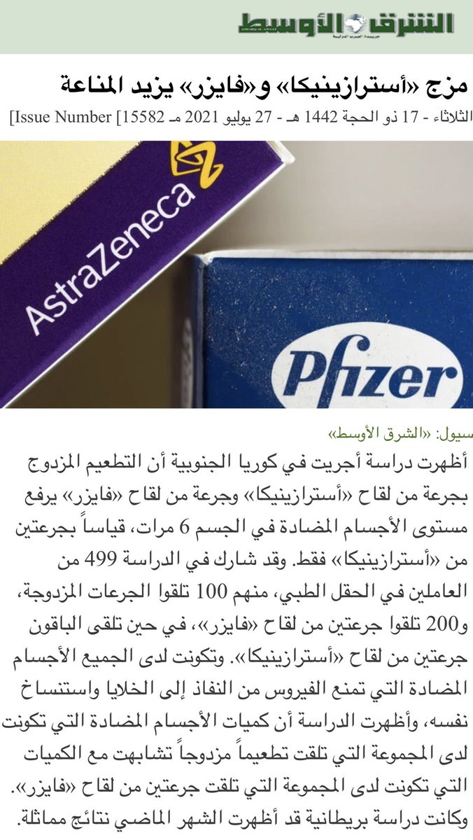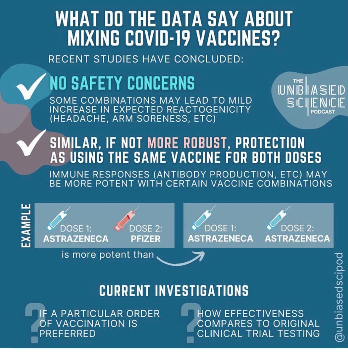 بعد أن أظهرت دراسات علمية دولية إمكانية إعطاء جرعتين من لقاحين مختلفين من لقاحات #كورونا بشكل آمن وفعال.