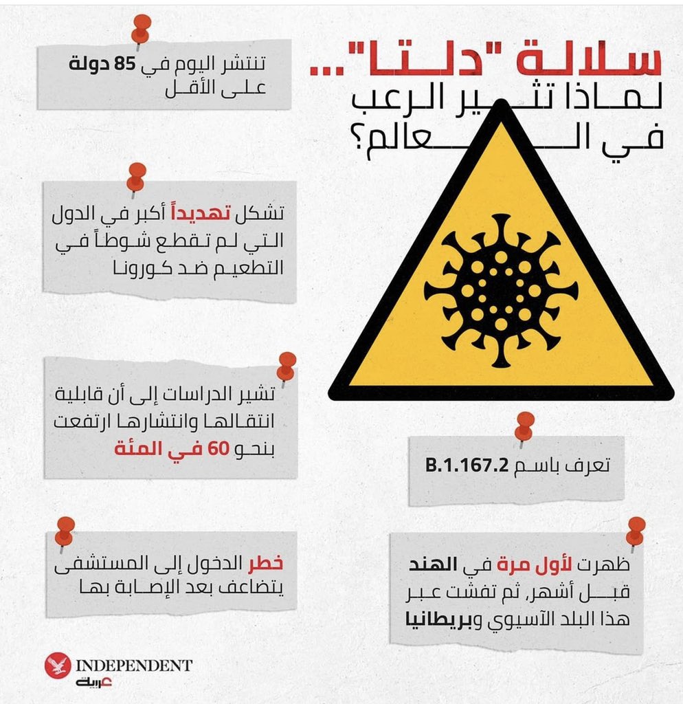 في ظل انتشار #سلالة_دلتا المتحور من فايروس كورونا نشرت مجلة #NEJM أمس ٢١ يوليو دراسة أظهرت فعالية اللقاح للأشخاص الذين تلقوا جرعتين ضد سلالة دلتا الأكثر شيوعآ في الوقت الحالي بين المصابين #فيروس_كورونا