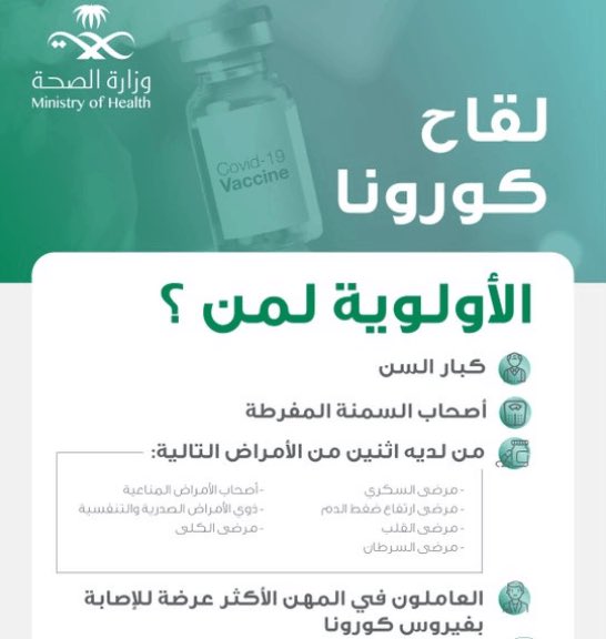 أعلنت وزارة الصحة السعودية الفئات المشمولة للجرعة الثالثة (معززة) من #لقاح_كورونا #كوفيد_19