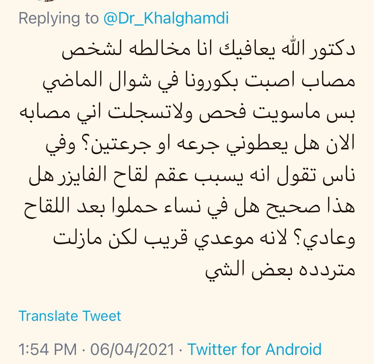 تم بحمد لله اخذ الجرعة الأولى من لقاح #كورونا #كوفيد_19 اسأل الله العلي القدير الصحة والعافية للجميع.