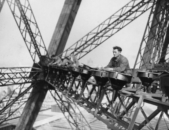 تغريدة ناطقة بالصور نرى فيها مراحل بناء البرج والوصول به مكتملًا في هيئته الأخيرة يوم 31 مارس 1889، وهو نفس اليوم الذي اصطحب فيه إيفل جمعًا من المسؤولين والصحفيين إلى قمة البرج في رحلة استغرقت بهم نحو ساعة كاملة صعودًا على الأقدام، حيث المصاعد لم تكن بعد جاهزة للعمل.