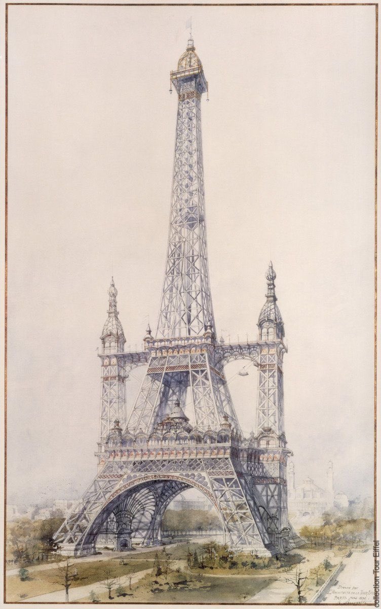 أوقد المعماريون أنوار إبداعهم، وراحوا يسهبون في تصور البرج الذي سيكون الأطول في العالم، قدمت مئات الاقتراحات والتصاميم إلى اللجنة المنظمة، لم يقنع أي منها لجنة التحكيم، ولم يرق لهم إلا تصور واحد من تصميم كلا من المهندسين موريس كويشلين و اميل نوغير التابعين لشركة غوستاف إيفل.