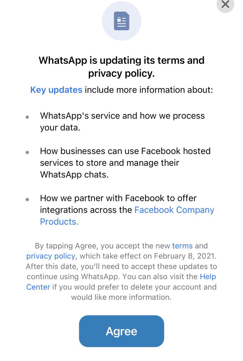 الشروط الجديدة تتيح لفيسبوك المالكة للواتساب من استخدام بيانات المستخدم في الواتساب لغرض الاعلان وتحسين الخدمة ولا راح يتم الوصول لبياناتك الفعلية لانها مشفرة لكن راح تستخدم بياناتك التوصيفية metadata مثل بيانات التسوق والمكان وجهات الاتصال وغيرها من تحركاتك وانت تستخدم الواتساب