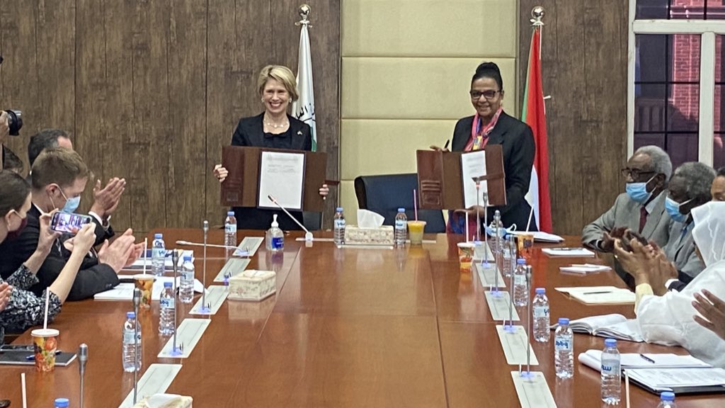 وأعلنت السفارة الأمريكي في بيان صادر عنها اليوم ان مذكرة التفاهم ستسمح (للحكومة الانتقالية تحت القيادة المدنية بالحصول على تمويل من (اكسيم) يتضمن القروض والضمانات والتأمين وذلك لتمويل الصادرات الامريكية للسودان تصل قيمتها الي مبلغ اجمالي بقيمة مليار دولار امريكي). (5/6)