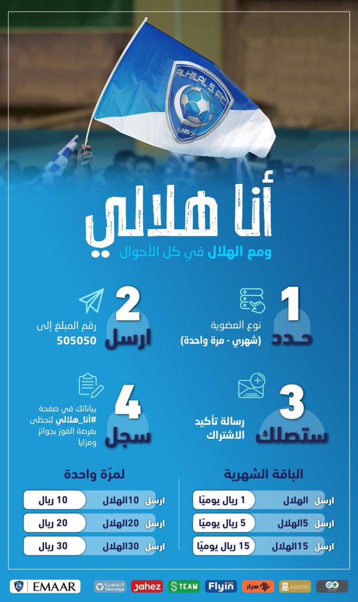 ختامًا.. أجدد الشكر والتذكير لجماهير #الهلال العزيزة أن الدعم المباشر للنادي عبر عضوية #أنا_هلالي يسهم في دعم النادي زيادة مداخيله وتعزيز قوته المالية، فضلًا عن أن التفاعل مع رعاة النادي يعزز من قيمة النادي التسويقية بما يعود عليه بالنفع حاضرًا ومستقبلاً..💙