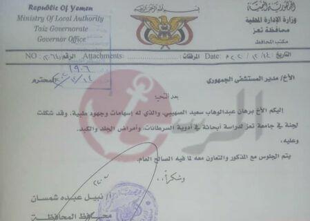 في منتصف ديسمبر الفائت حصل برهان على توصية من محافظ تعز لمدير مستشىفى الجمهوري للتعاون معه، لاسهاماته الطبية في أدوية السرطانات وأمراض الجلد والكبد!!!
