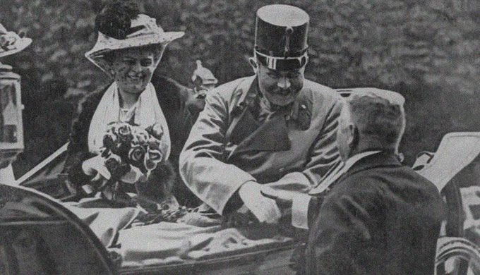 15. صورة تجمع الأرشيدوق "فرديناند" ووزوجته "صوفي" قبل ساعة من تعرضهما لإطلاق النار من طرف الناشط القومي الصربي "غافريلو برنسيب" كان هذا الحدث هو ما تسبب في اندلاع الحرب العالمية الأولى