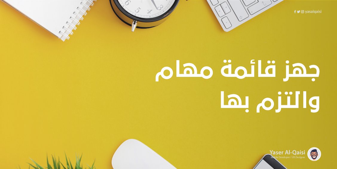 2- في صباح يومك وقبل ماتبدا في اعمالك، خذ وقتك وحدد أهم مهام لازم تنجزها في يومك .