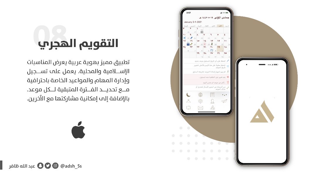 تقويم مميز، بهوية عربية بالتقويم الهجري، ومؤقته به المناسبات الاسلامية وتقدر من خلاله تدير مهامك وموعيدك من خلاله