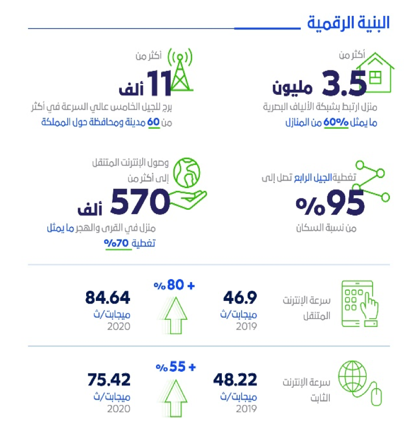 -4- لعبت وزارة الاتصالات وتقنية المعلومات الدور الرئيسي في تهيئة البنية التحتية للتقنية مما ساهم في سهولة عمل الوزارات والهيئات والتطبيقات ويسر على المواطنين والمقيمين معيشتهم داخل المملكة بفضل الله.