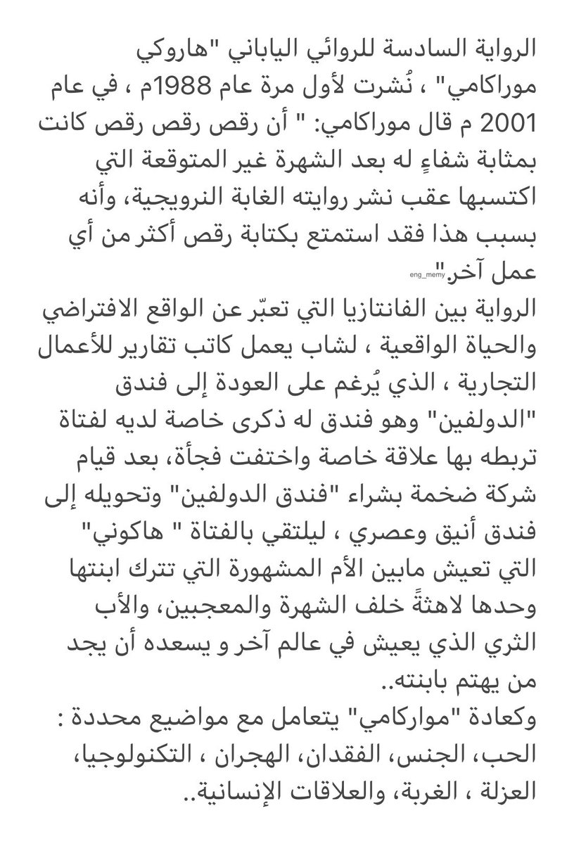 ٢٠/ رواية"رقص .. رقص .. رقص"للروائي الياباني/ هاروكي موراكامي📚✨..