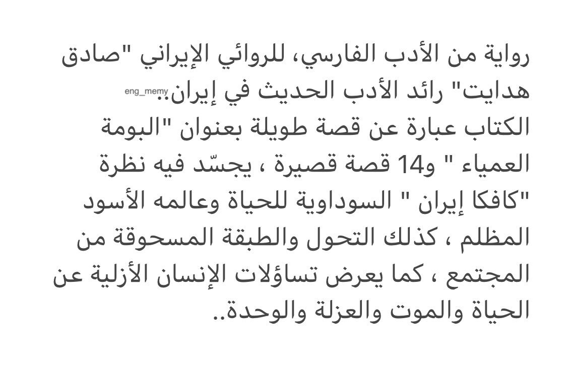 ٣٣/رواية " البومة العمياء " للكاتب الإيراني / صادق هدايت 📚✨..