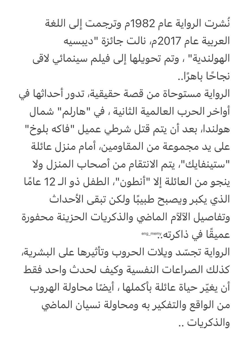 ١٤٢/رواية "الاعتداء" للكاتب الهولندي/ هاري موليش📚✨..