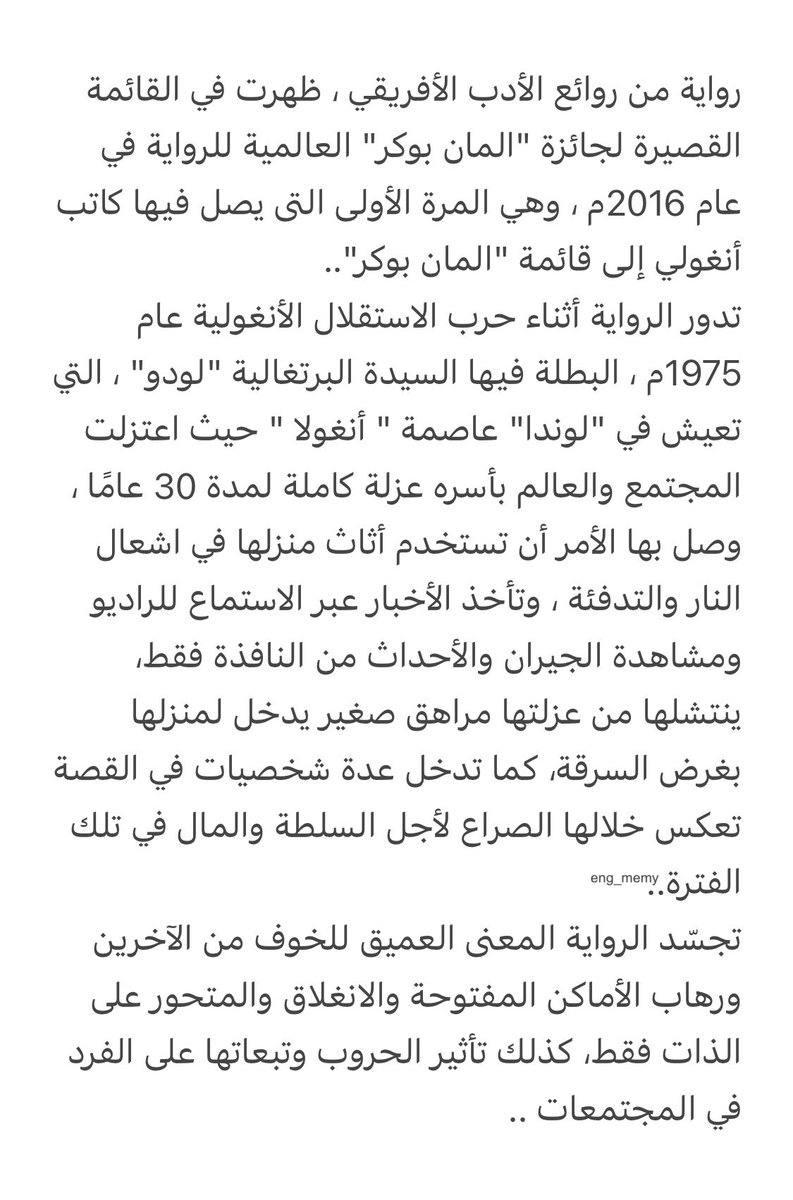 ١٣٧/رواية " نظرية عامة للنسيان" للكاتب الأنغولي/ جوزيه أغوالوسا 📚✨..