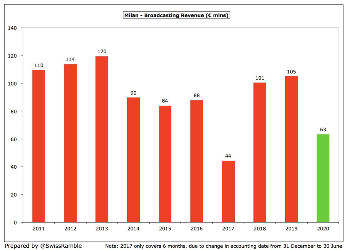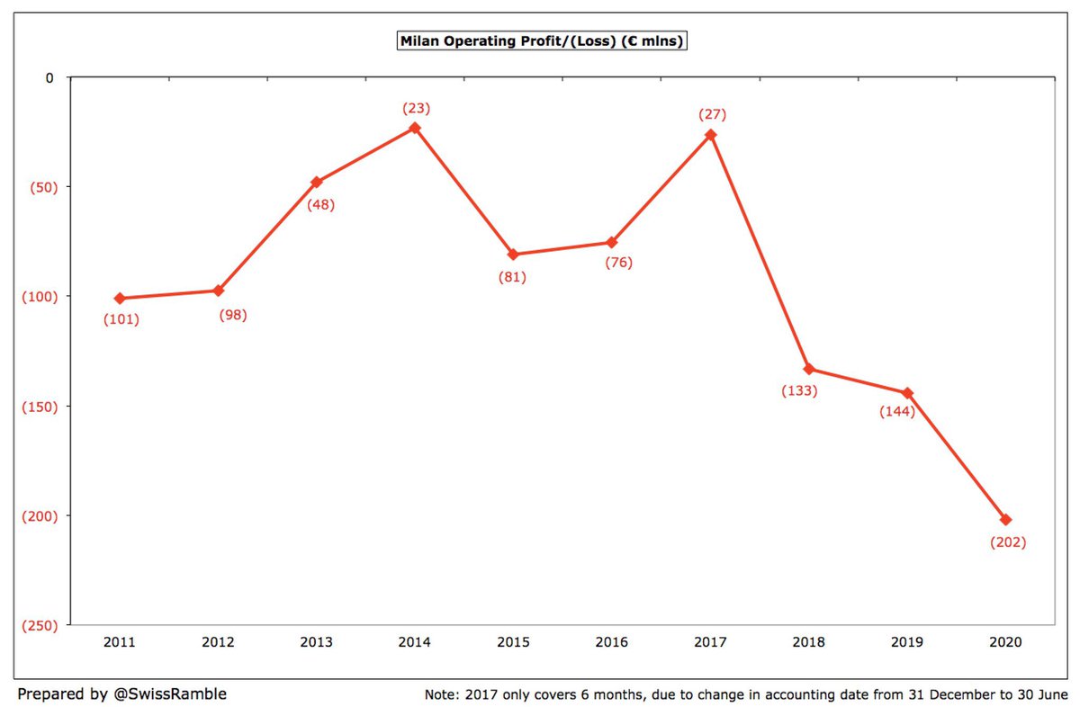 - ارتفعت خسائر ميلان خلال 19/20 لـ195M€ مع الضرائب ..