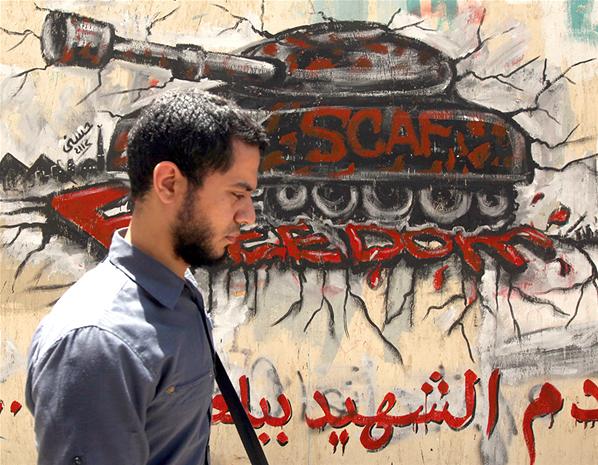 المحيطة بمركز تجمع الجماهير و بدأ الحديث عن فن الجرافيتى واصوله بعد ان تصور بعض المخبرين الجهله انه دليل على التدخل الخارجى او التمويل الاجنبى للثورة
