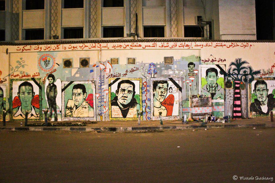 وثقت رسوم الجرافيتى بعض حكايات الثورة ووجوه الشهداء وساعد امتداد جدار الجامعة الامريكية فى شارع محمد محمود على توفير مساحة جمعت كثير من الوجوه بمثابة حديقة للشهداء وامتد التقليد الى مدن اخرى وشهداء آخرين مثل خالد سعيدبالاسكندرية ورامى حمدى منيا القمح شرقية ومحمد جمال من المنصورة