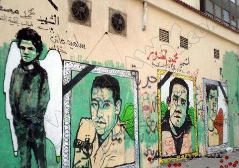 خلال احاث ثورة يناير ظهرت رسوم جدارية تشمل شعارات ومطالب الثورة وصور بعض الشهداء .انتشرت الرسوم فى الشوارع
