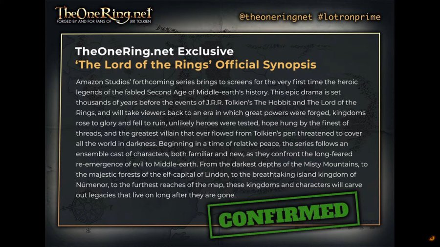 تجلب سلسلة Amazon Studios القادمة إلى الشاشات لأول مرة الأساطير البطولية للعصر الثاني من تاريخ الأرض الوسطى، تدور أحداث هذه الدراما الملحمية قبل آلاف السنين من أحداث سداسية أفلام الهوبيت وسيد الخواتم ،