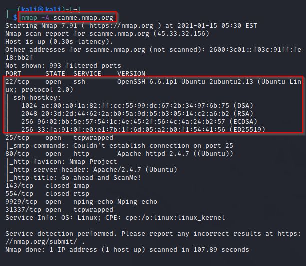 📌 { <target specification> } : مثل scanme.nmap.org or google.com .