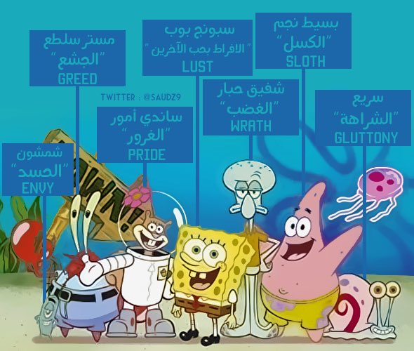 هل كُنت تعلم بأن كل شخصية من شخصيات مسلسل "سبونج بوب" تمثلّ خطيئة من "الخطايا السبع المميتة" ؟