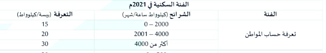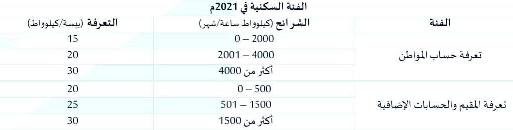 منذ بداية يناير ٢٠٢١ هناك ثلاث انواع للتعرفة السكنية: