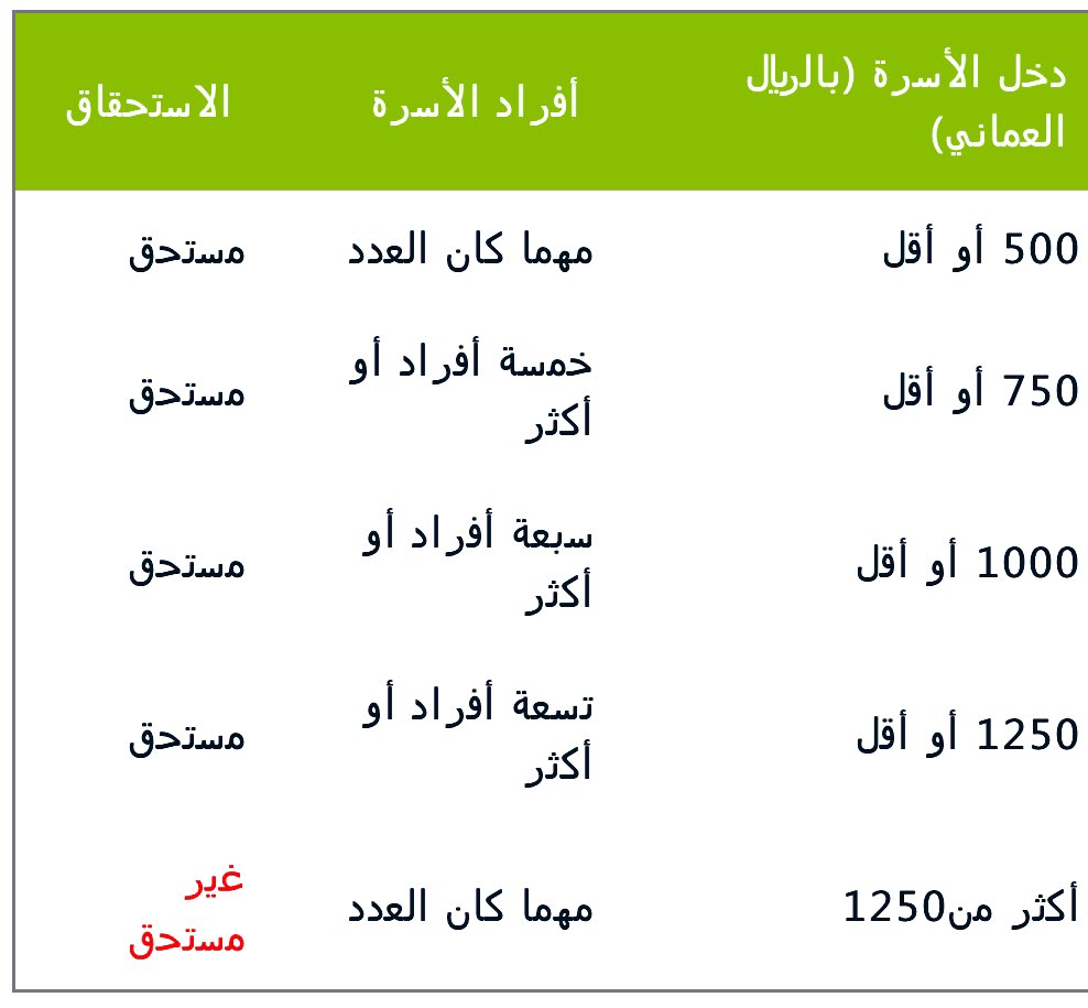 اما عن الية التسجيل للحصول على حساب الدعم الوطني فيجب اولا ان يكون للمواطن حساب مواطن معتمد في شركات الكهرباء بالوثائق المطلوبة (كما ذكر اعلاه) و من ثم التسجيل في نظام الدعم الوطني nss.gov.om مع الاثباتات التي يطلبها نظام الدعم الوطني