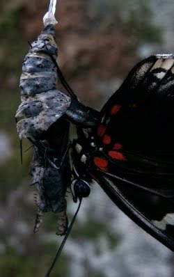 فقبل خروج الفراشة بيوم تقريبا يقوم أحد الذكور بالإلتصاق بالشرنقة وتغطيتها بأجنحته لكي لا يسمح للذكور الآخرين من الإقتراب منها