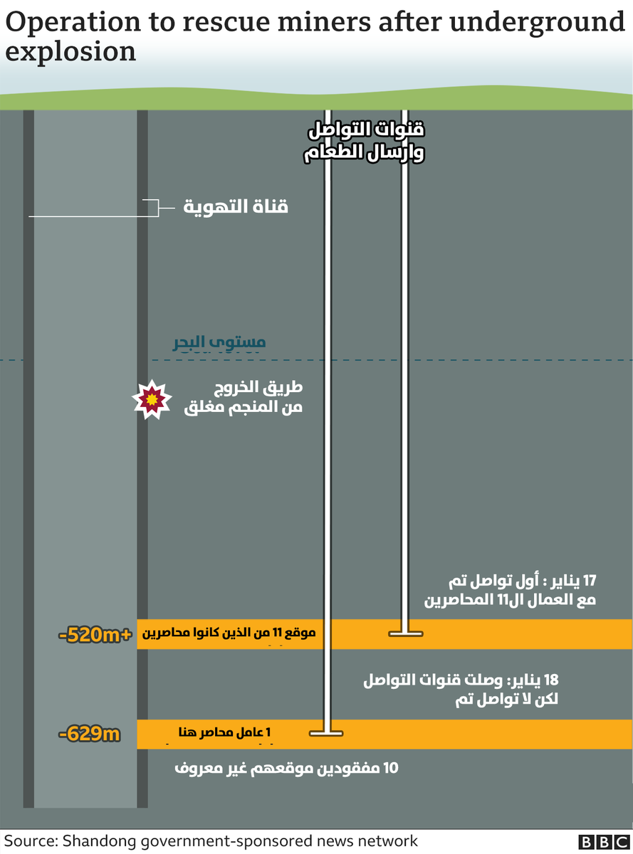 "سنستمر في استخدام أجهزة الكشف عن الحياة وغيرها من المعدات للاتصال بالمحاصرين تحت الأرض وفي الوقت نفسه نقوم بتسريع تطهير العمود الرئيسي وحفر ثقوب إنقاذ إضافية."