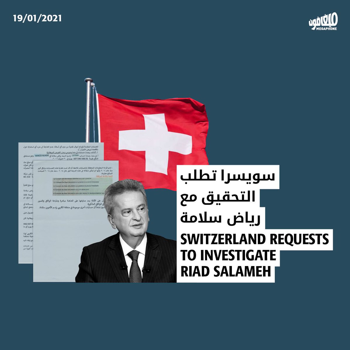 تلقّت #وزيرة_العدل ماري-كلود نجم اليوم الثلاثاء من السلطات القضائية في #سويسرا طلب تعاون قضائي للتحقيق مع حاكم #مصرف_لبنان #رياض_سلامة، في قضية حوالات مصرفية تبلغ قيمتها 400 مليون دولار تعود له ولشقيقه رجا سلامة ومساعدته ماريان حويك