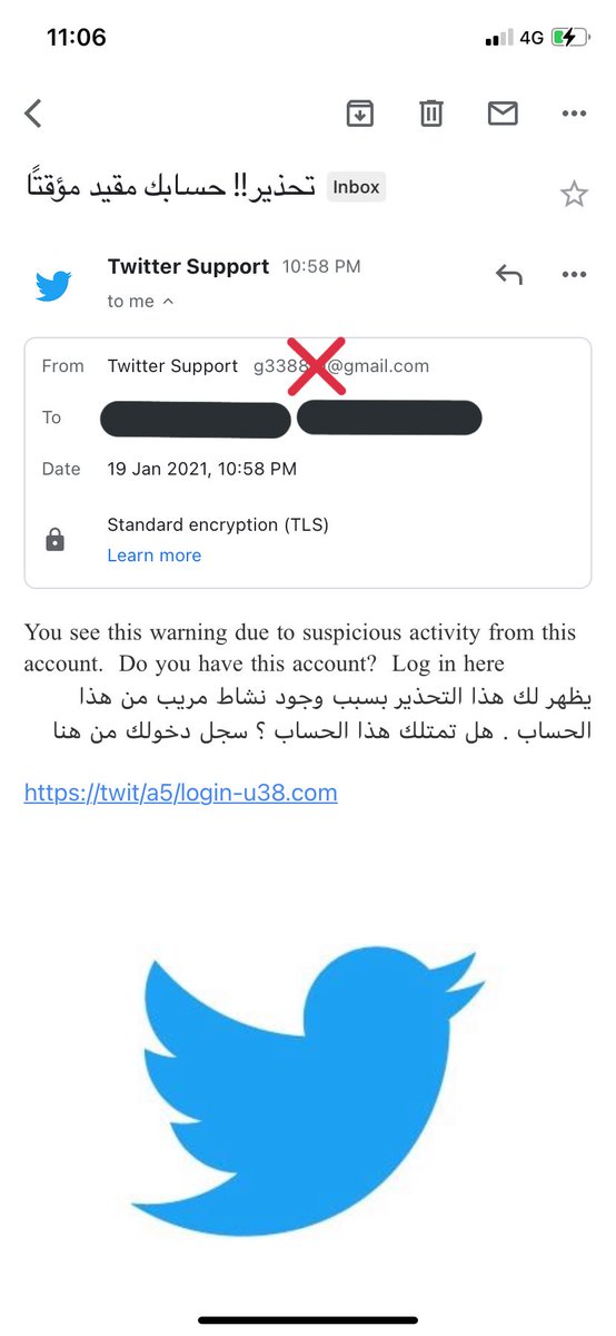طيب السؤال المهم كيف اتحقق من الرساله اللي وصلتني هل هي من تويتر فعلا او من شخص خبيث ؟!🤔