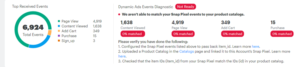 وهي أن الSnapchat Pixel Helper يعطي اشارات صحيحة وايضا عند الدخول لصفحة البكسل في المنصة تجد البكسل يعمل بشكل صحيح ويسجل عمليات الاضافة للسلة والشراء
