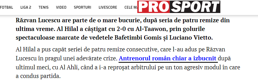🔵🔵 صحيفة "prosport" الرومانية: "أنهى #الهلال سلسلة من أربعة تعادلات متتالية جعلت المدرب رازفان لوشيسكو على شفا أزمة حقيقية. فازوا على التعاون بثنائية جوميز وفييتو. كلا الهدفين كانا بضربة مقصية، وصل الفريق إلى 29 نقطة بفارق ثلاث نقاط عن الشباب والأهلي".