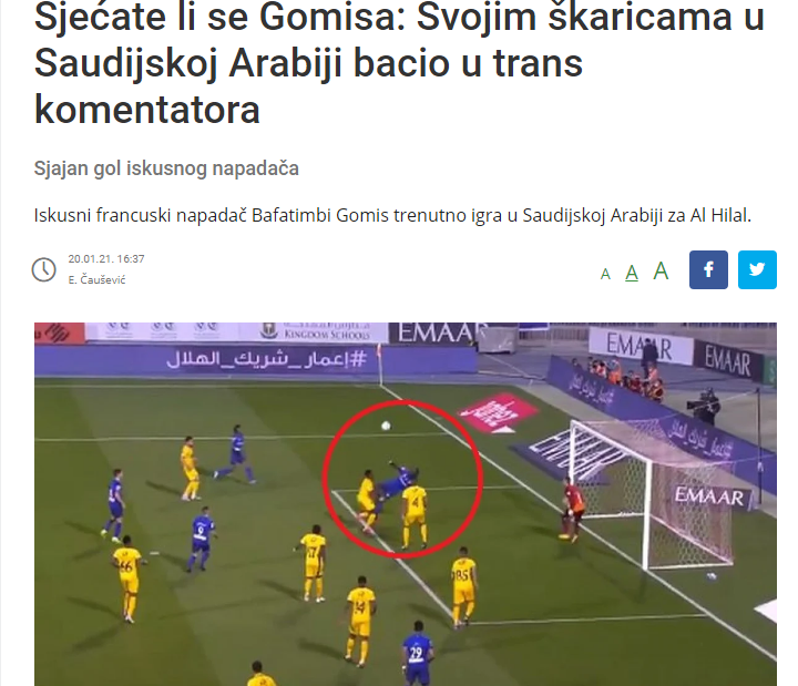 🔵🔵 صحيفة "sportsport" البوسنية: "هدف رائع لمهاجم متمرس.. بافيتمبي جوميز يُعيد أيامه الرائعة عندما لعب مع ليون.. صاحب الخبرة البالغ من العمر 35 عاماً يستمتع بقميص #الهلال ويحرز هدفاً رائعاً في شباك التعاون بضربة مزدوجة قاتلة".