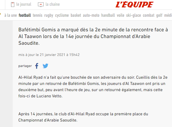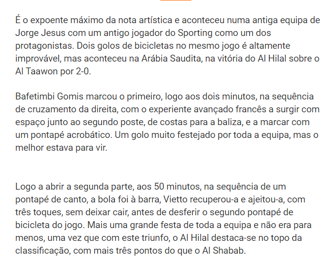 🔵🔵 صحيفة "abola" البرتغالية: "بافتيمبي جوميز يُسجل ضربة مقصية رائعة لفريقه #الهلال في مباراة التعاون ضمن الجولة 14 من الدوري السعودي للمحترفين".