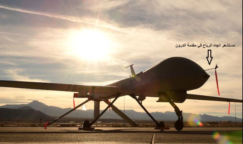 وأما مستشعر اتجاه الهواء فهو عبارة عن جنيح صغير حر الحركة، يساعد في توقع قوة الرفع المتولدة من الجناح ومنع زاوية الهواء ان تتجاوز حدود التصميم الخاص بديناميكية الهواء.