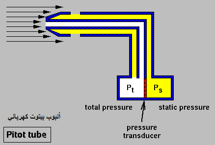 يعتمد مستشعر أنبوب بيتوت على قياس فرق الضغط #الجوي الثابت و الضغط المولد من الهواء المصطدم في مقدمته، هذا الفرق يساوي الضغط الديناميكي ويمكن بسهولة حساب سرعة الهواء من خلاله.