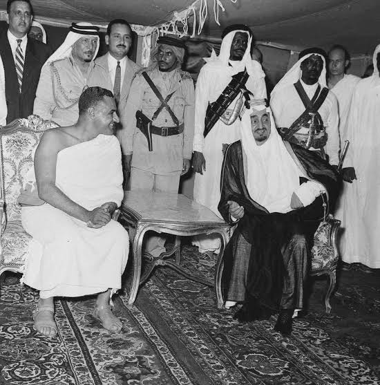 5️⃣مع بداية الثورة و بعد الايام الأولى منها جاء إلى مصر الملك فيصل رحمه الله و طلب لقاء مع مجلس قيادة الثورة و بالفعل حدث اللقاء و قال لهم أنه ينقل تحيات جلالة الملك عبدالعزيز و يتمنى التوفيق للمجلس بإعتباره من يمثل المصريين الان و قال ايضا انه يكن الاحترام و التقدير للملك فاروق