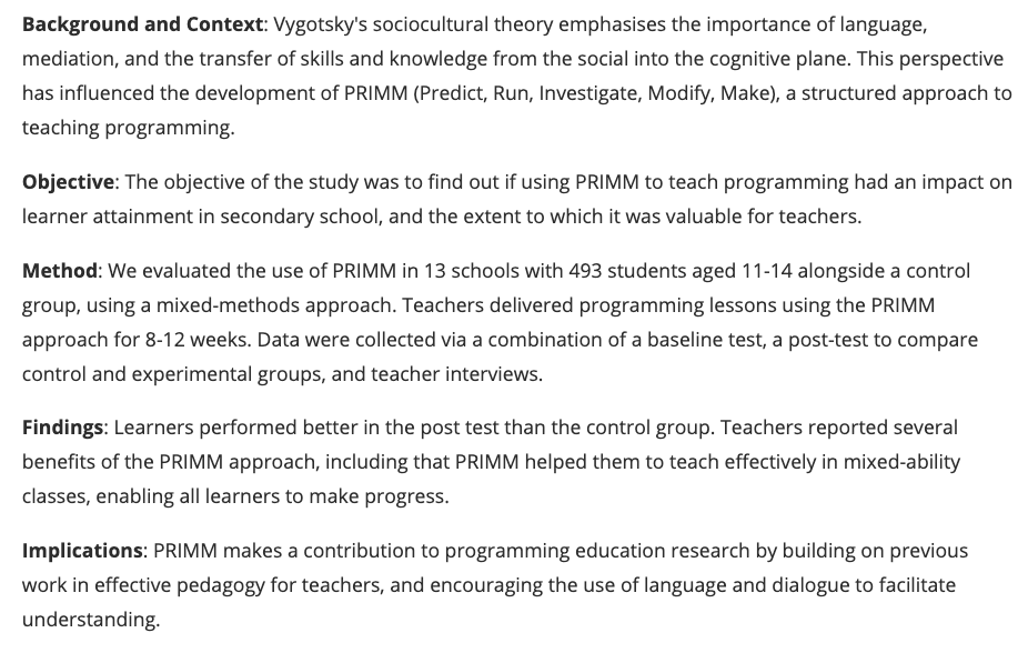 في النهايه من الصعب تطبيق جميع المراحل في حصه واحده ولكن يمكن تجزئة التطبيق حسب اهمية كل مرحله ومستوى الطلاب. هناك العديد من الطرق الاخرى في تدريس الحاسب بشكل عام والبرمجة بشكل خاص سأتطرق لها لاحقا.